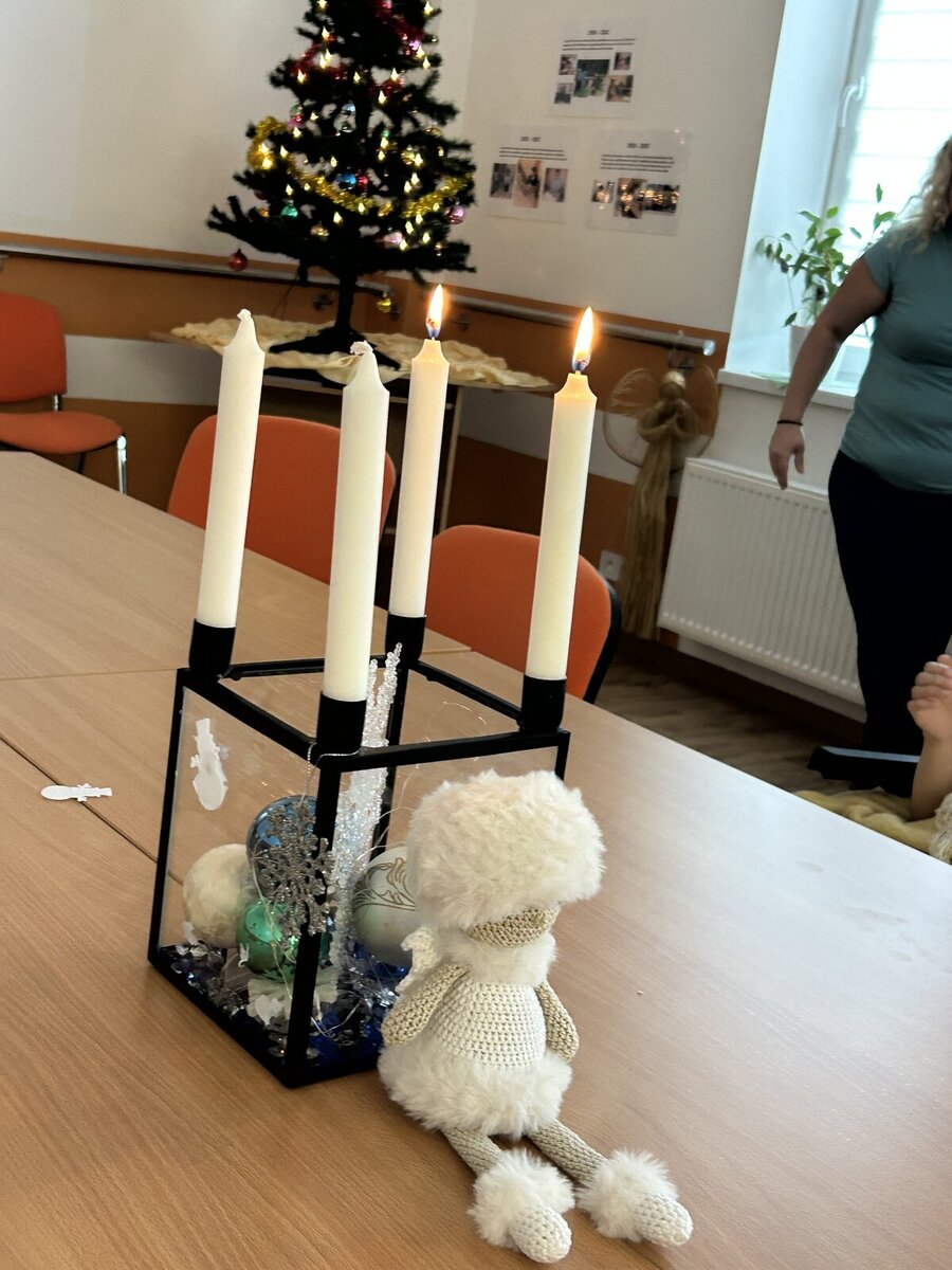 V pátek 5.12. chodil Jeseníkem Mikuláš, ale do Denního stacionáře Šimon nakoukli andělé až dopoledne v pondělí 8.12. Na adventním svícínku plápolal plamínek druhé svíčky – VÍRA A MÍR a vytvořil tak krásnou atmosféru pro Andělské setkání, které pro uživatele připravili pracovnice stacionáře.