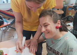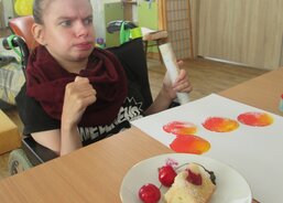 Nejdříve si sladké plody prohlédli, také je ochutnali. Poté zjistili, že mohou sloužit jako krásná ozdoba místo náušnic. Také se pustili do malování obrázků, s nimiž si vyzdobili zdi komunitní místnosti. S pomocí pracovnic si uživatelé upekli výbornou bublaninu a na závěr si zatancovali na písničky o čerešních. Prostě si užili krásný třešňový den.