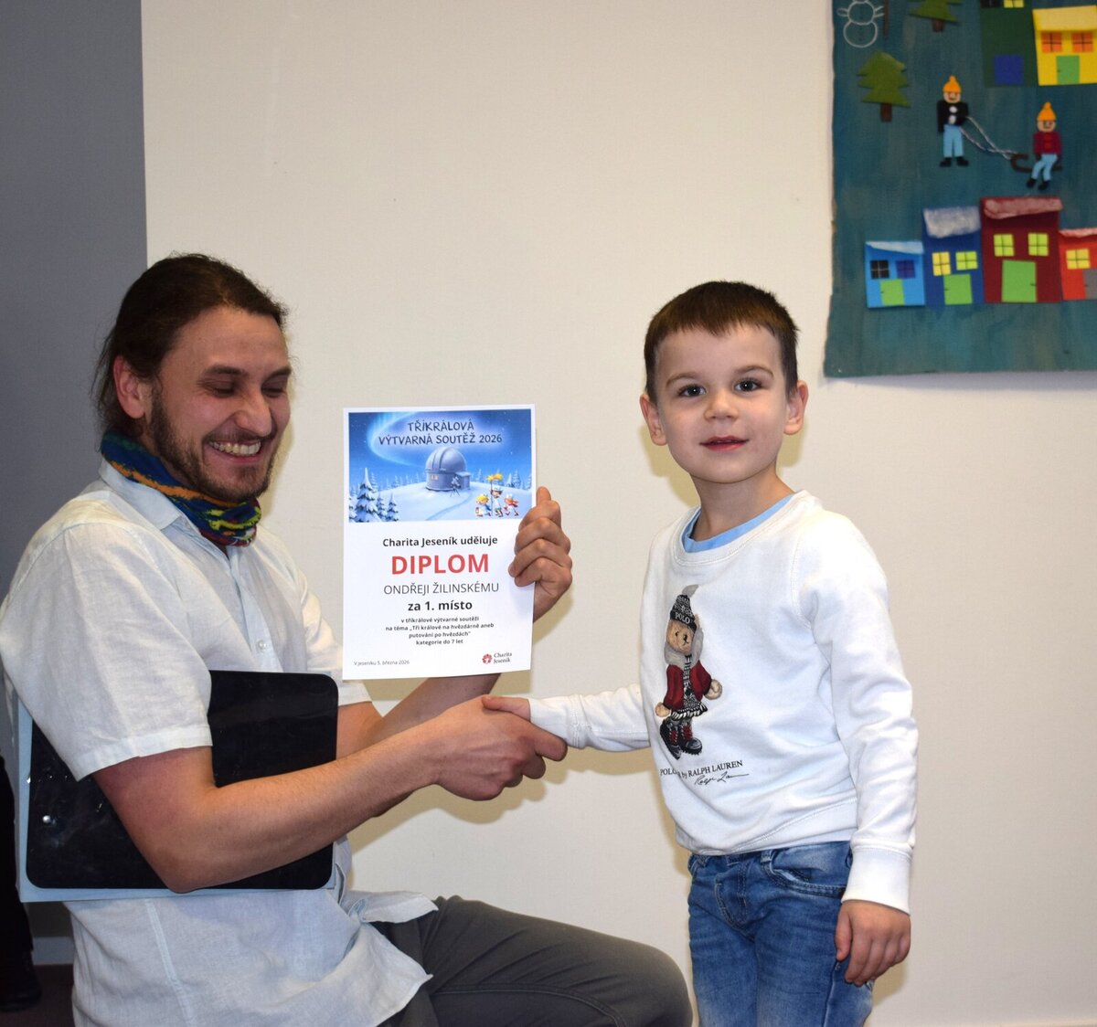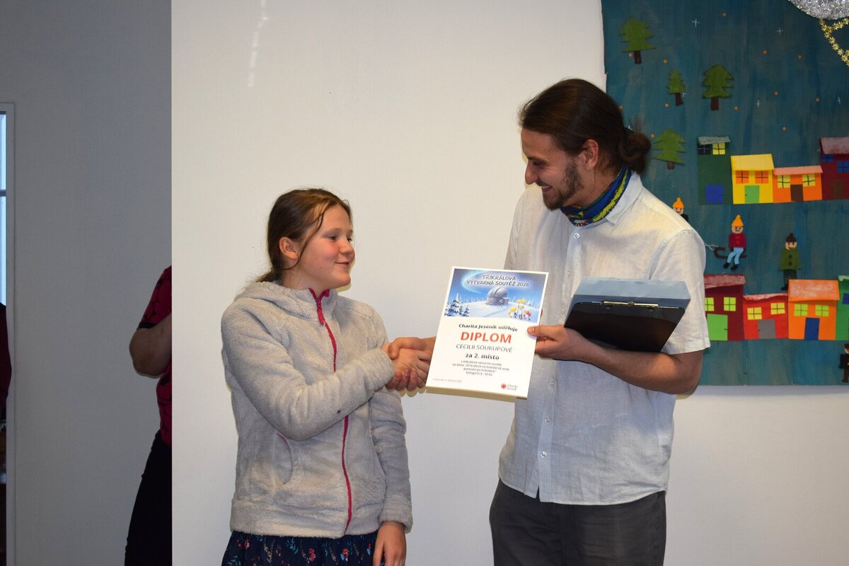 Centrum pomoci sv. Martina je od čtvrtka zaplněné desítkami výtvarných děl a fotografií, které spojuje Tříkrálová sbírka. Právě zde se setkali vítězové 19. ročníku výtvarné soutěže, která letos nesla název „Tři králové na hvězdárně aneb Putování ke hvězdám“. Charita Jeseník při této příležitosti ocenila drobnými pozornostmi také nejzdařilejší fotografie koledníků. Autorka snímku, který na facebooku organizace získal nejvíce „lajků“, si z vernisáže odnesla mobilní telefon.