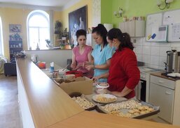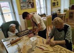 Klienti dostali do rukou těsto, které pro ně připravily kuchařky z Vývařovny AVE. Postupně se senioři s pomocí pečovatelek pustili do přípravy perníčků, lineckého a pudinkového cukroví a vanilkových rohlíčků, které přece nemohou chybět na žádném vánočním stole. Když se ke klientům přidaly děti, to to teprve v domově ožilo veselím. Na každém seniorovi bylo vidět, jak jej těší přítomnost mládí.