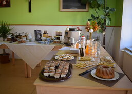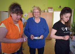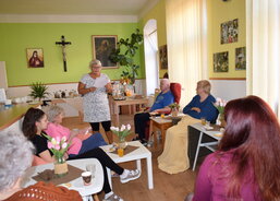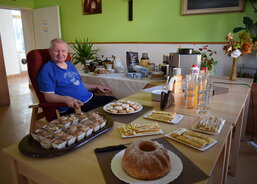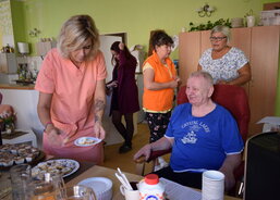 Na stolech byly i tácy s lineckým cukrovím, bábovkou, výborným Tiramisu a slanými tyčinkami, které v rámci dopolední aktivizace připravili klienti s pomocí pečovatelek. „U lineckého cukroví nám klienti radili, jak máme vykrajovat, ale marmeládou už slepovali sami a u toho si cvičili jemnou motoriku,“ prozradila Diana Zahradníčková. „No prostě zjistili, že bez nás by se to neobešlo. Ale musím říct, že jsou šikovné. Maminky je naučily všechno,“ pochválila pečovatelky klientka Jarmila Lemonová. „To mně se zase nejvíc líbí, jak tady všechny poletují, když se tady něco chystá,“ doplnila ji paní Holáňová.