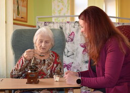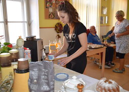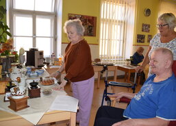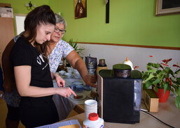 Na slavnostní den se v domově důkladně připravili. Na slavnostně prostřených stolech nechyběly nejrůznější mlýnky na kávu, s nimiž si kávová zrnka mlely už naše prababičky. „Pamatujete? Měli jste takový mlýnek doma, když jste byl malý?“ ptala se klienta aktivizační pracovnice Diana Zahradníčková. Potom ukázala na elektrické kávomlýnky, které v 80. a 90. letech minulého století nechyběly snad v žádné domácnosti. „Ano, tenhle jsme měli doma,“ přisvědčila jedna klientka. „No a podívejte, kam jsme došli my. Za nás už kávu dokáže uvařit takový stroj. Stačí zmáčknout knoflík,“ předvedla paní Zahradníčková moderní kávovar a pustila se do přípravy kávy.