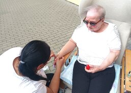 Je skvělé, když ženy o sebe rády pečují a nechávají se hýčkat, přestože mají na zádech několik křížků. Pro jednu z klientek se pečovatelka proměnila na kadeřnici a upravila jí vlasy. Další ženy si nechaly hýčkat ruce. Takové aktivity mohou výrazně přispět k jejich duševní pohodě a sebevědomí. V domovech pro seniory je důležité podporovat individuální potřeby a zájmy obyvatel, což zahrnuje i péči o vzhled.