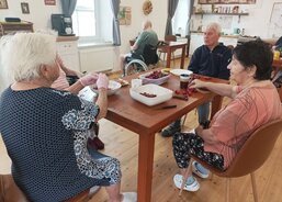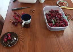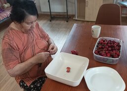 Společnými silami se okamžitě pustili do slaďoučkých plodů. Při vypeckovávání třešní došlo i na ochutnávání. Bez toho by to přece nešlo. Z krásně zralých třešní si klienti upekli bublaninu, a ještě jim zbylo dost ovoce na to, aby si uvařili marmeládu. To budou sladké svačinky chutnat!