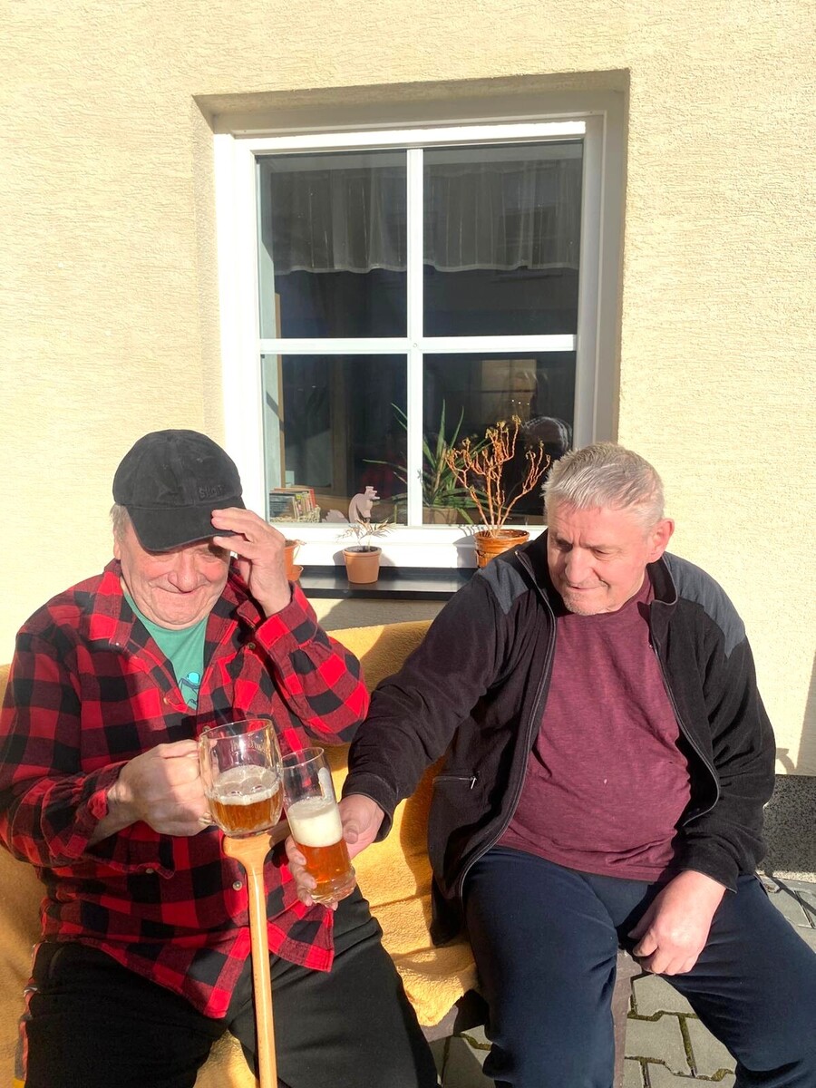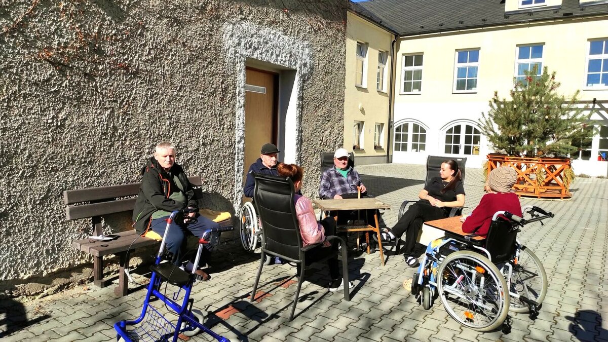 Někdy si společně vychutnají šálek kávy, jindy malou svačinku na čerstvém vzduchu nebo si pánové dopřejí trochu piva. I kdyby to mělo být jen na pár minut, pobyt venku dělá klientům velkou radost. Po dlouhé zimě si mohou užít sluneční paprsky, nadechnout se čerstvého vzduchu a na chvíli změnit prostředí.