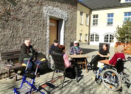 Krátké posezení na zahradě přináší seniorům nejen příjemné zpestření dne, ale také dobrou náladu.