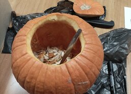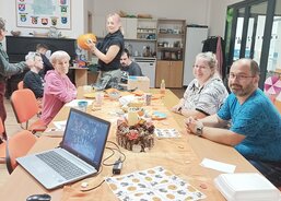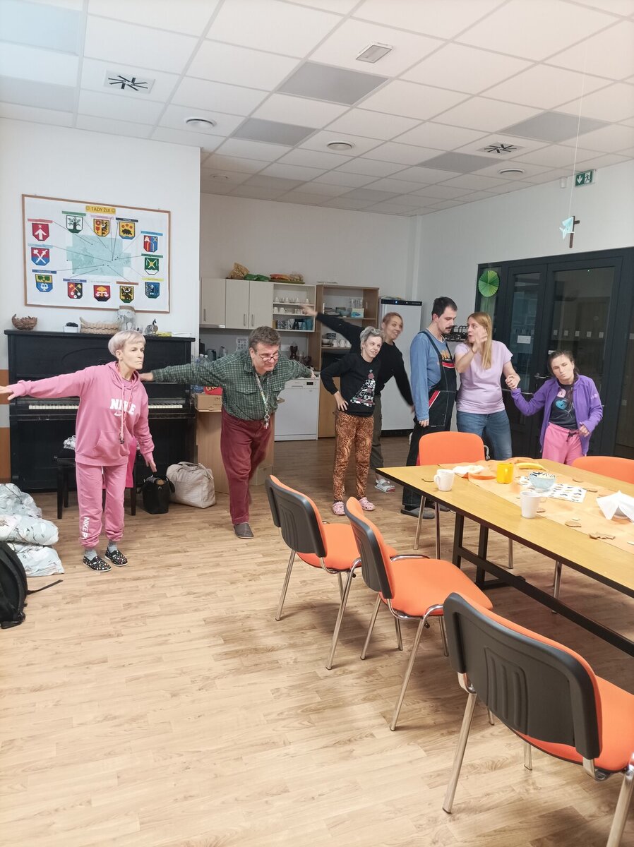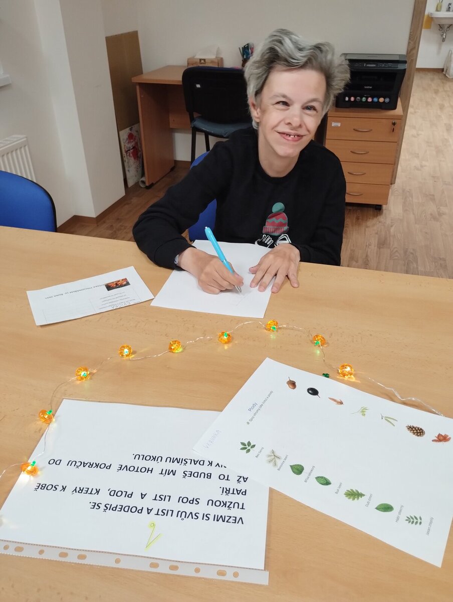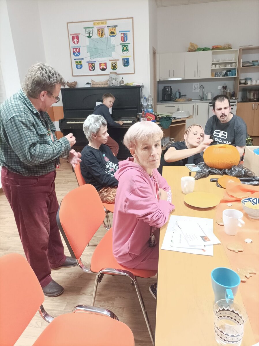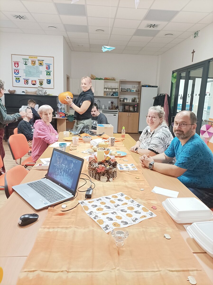 Pět odvážlivců, kteří si troufli zůstat na noc bez rodičů, se sešlo odpoledne ve stacionáři, kde pro ně pracovníci připravili několik úkolů. Všichni si společně zacvičili. V rámci arteterapie si vydlabali dýni, která nyní zdobí vchod do budovy. Také řešili kvízy, které je s pomocí svítících šipek provedly celou budovou. Za jejich splnění obdrželi uživatelé medaile. „A bude další do sbírky,“ reagoval na cenu uživatel Tomáš.