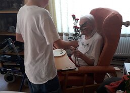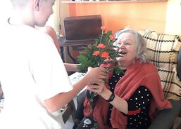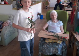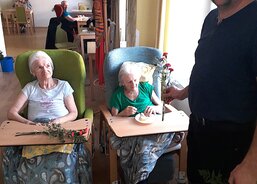 Aktivizační pracovnice Anna Strýčková spolu se Šárkou Schubertovou a s pomocí klientky upekly během dopoledních aktivit rolády. Odpoledne dorazili až z Bělé pod Pradědem manželé Švajkovi se synem Vojtou. Pánové si připravili hudební vystoupení. Pan Miroslav Švajka zahrál na tubu a Vojta na akordeon. Na závěr vystoupení předali pánové dámám krásný karafiát.