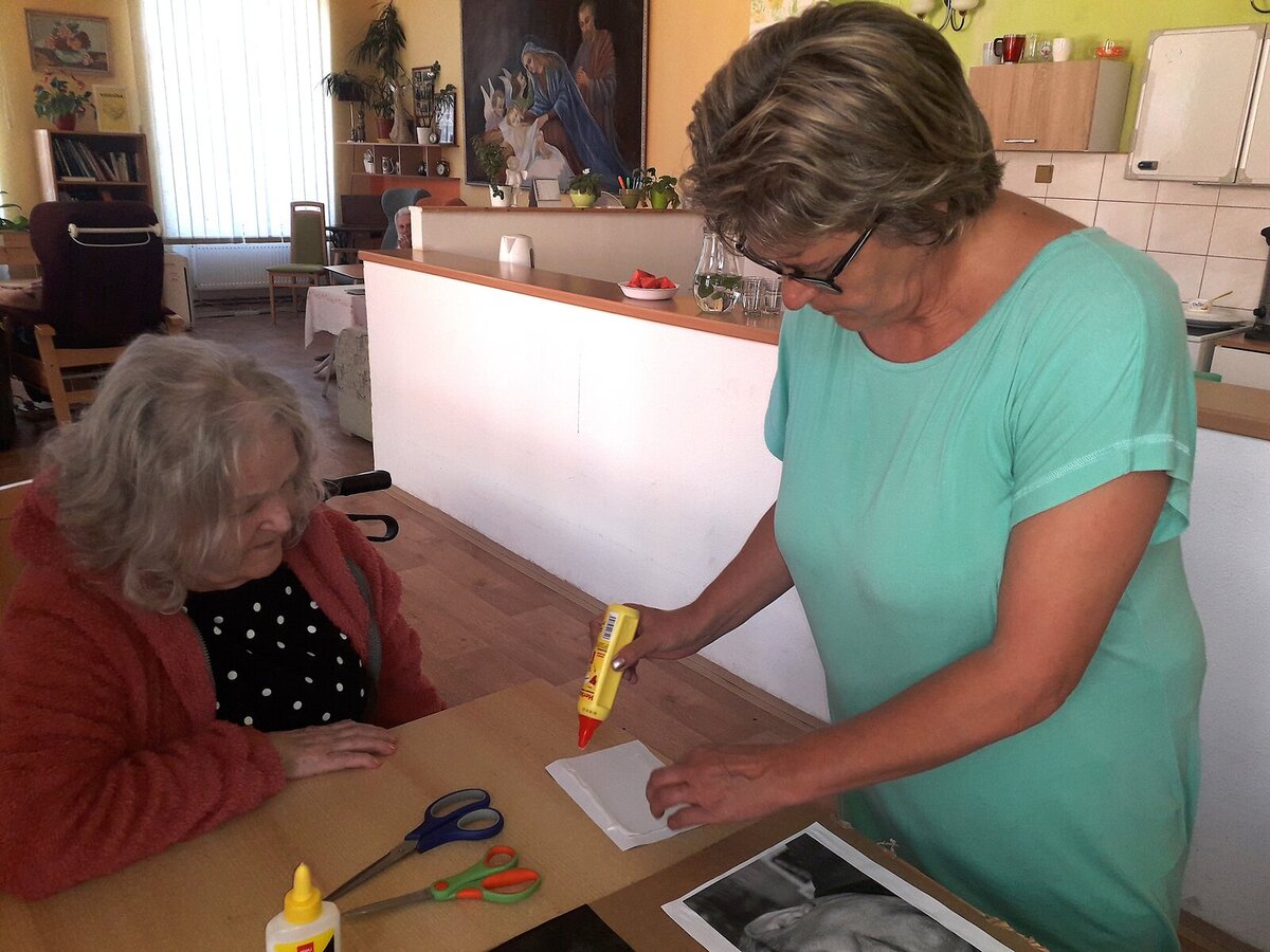 Odpolední čas v domově věnovali arteterapii. Klienti si z fotografií svých oblíbených zpěváků vytvořili koláž, která nyní zdobí chodbu domova. „Děkuji všem, kdo se na tomto krásném a smysluplném dni podíleli. Bylo to dojemné, veselé i léčivé setkání se vzpomínkami, které stále žijí v srdcích našich klientů,“ dodala Anna Tesařová.