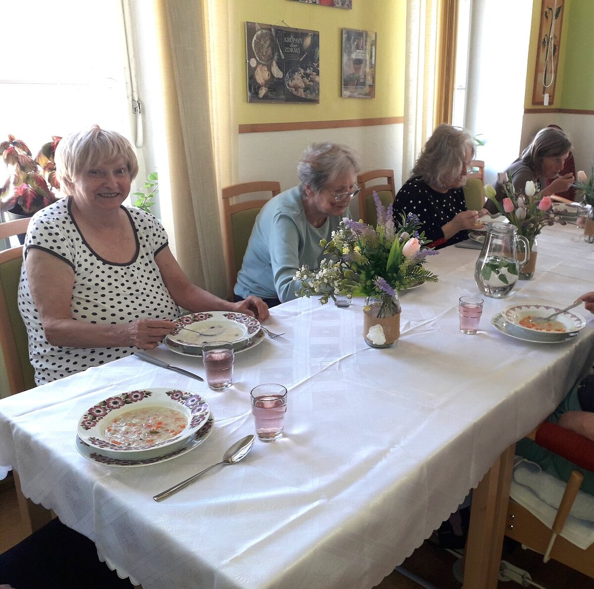 Další zajímavou aktivitou bylo listování knihou o zaniklých osadách na Jesenicku. Jeden z klientů si dokonce vzpomněl, kde se určité místo nacházelo, což pracovníky domova velmi potěšilo. Následoval společný oběd u slavnostně prostřeného stolu. „Jedna z klientek poznamenala, že to „vypadá jako na svatbě“ – a přesně takový pocit jsme chtěli vyvolat,“ řekla aktivizační pracovnice.