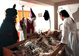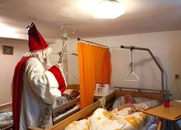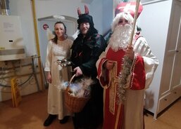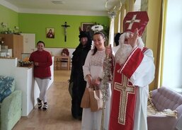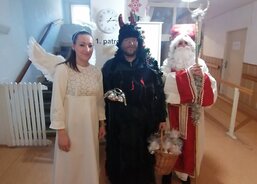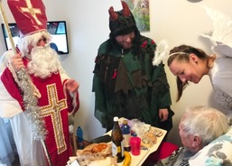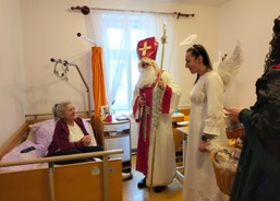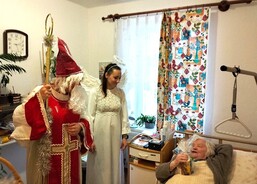 Mikuláš s čertem a andělem zavítali i do sousedního domova, kde pracovníci pečují o seniory s demencí. I tady udělali svatí s neposedným čertem klientům velkou radost.