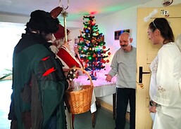 V úterý zavítaly do Domova pokojného stáří sv. Hedviky ve Vidnavě se svým hudebním vystoupením děti ze školní družiny a pod vedením paní učitelky Kačorové zazpívaly vánoční písničky a přednesly vánoční básničky. Paní učitelka přinesla jako dárek adventní věnec, který pečovatelky daly na jídelnu. Moc jim tímto děkujeme, protože klienti si vystoupení moc užili a byli rádi, že se za nimi děti přišly podívat a rozveselit je. Mezitím se sociální pracovníci převlékli za Mikuláše s čertem a koordinátorka péče vklouzla do kostýmu anděla a šli obdarovat děti za jejich vystoupení. Při své pouti pak zavítali i za klienty. „Nemyslím si, že by Mikuláš, čert a anděl měli obdarovávat jen děti. Kdybyste viděli naše seniory, jakou měli radost z této trojice, když se u nich objevili. Jak se paní, která nemůže, a přitom by tolik chtěla mluvit, rozzářily oči, když za ní přišli. To je nepřenositelná radost a jsem ráda, když ji můžeme dělat,“ uvedla vedoucí domova Milena Rygelová.