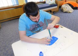 S lidmi s poruchou autistického spektra ve stacionáři již mnoho let pracují. A tak duben, v rámci svého Duhového roku, kdy každý měsíc prožívají jinou barvu, zasvětili barvě modré. Ta k autismu symbolicky patří. Klienti stacionáře si jednoduchou technikou za pomocí tiskátek vyrobili svůj modrý ubrus. Podíleli se na něm všichni a teď jim bude nejen v dubnu zdobit společný stůl.