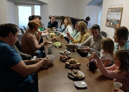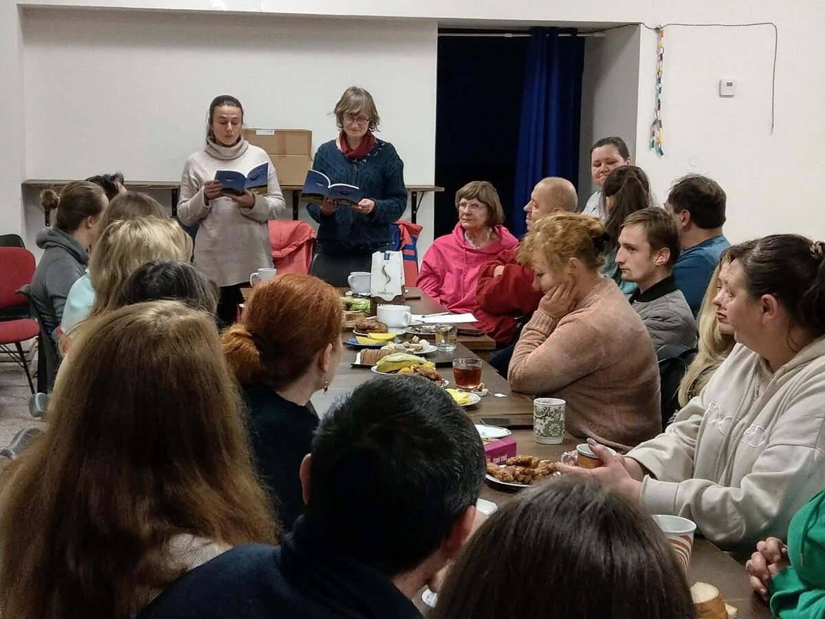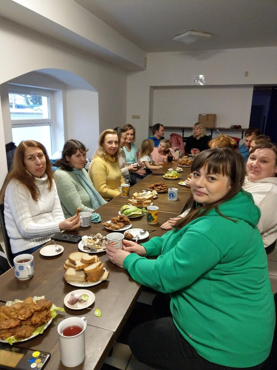 Vánoční setkání – tak jsme nazvali poslední letošní společnou akci, na které se setkáváme s ukrajinskými sousedy. Opět vše proběhlo v prostorách Křesťanského společenství, za což velmi děkujeme. A protože šlo o vánoční setkání, nechybělo i lehce slavnostní občerstvení, o které se postarala naše Vývařovna AVE. Ovšem nikdo z účastníků nepřišel s prázdnou a každý přinesl nějaké malé pohoštění, o které se chtěl podělit.