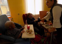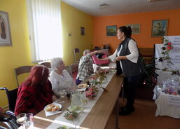 Setkání bylo velmi veselé, jak o tom napsala aktivizační pracovnice, paní Markéta Kubalová: „Připili jsme si sklenkou vínka, zazpívali si a před vylosováním si ceny z dárkového stolu měl každý z klientů mimicky, pantomimou, zvoláním nebo třeba úryvkem básně něco předvést tak, aby ostatní klienti po něm zopakovali. Kolik zábavných momentů a upřímného zasmání z toho vzešlo, si snad dokážete představit. Posléze tento klient vylosoval z klobouku dalšího z klientů, že se opravdu dostalo na všechny. Jak uvedl klient naší odlehčovací služby pan Jan: ‚Nikdy jsem na podobné akci nebyl a jsem tak nadšený, že jsem dostal pozvání a děkuji! Praktický dáreček v podobě hliněného korbele na pivko mi bude krásnou vzpomínkou.‘ Po skončení této události jsme my z personálu dostali mnoho objetí a polibků od klientů, které bylo zase nám obrovským poděkováním a potěšením.“