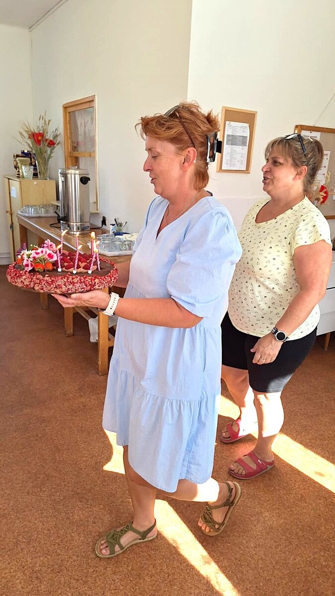 O krásné překvapení v podobě vlastnoručně upečeného dortu se svíčkami se postarala patronka oslavenkyně paní Jana Karachisaridu. Také zajistila malé pohoštění, aby si všichni mohli společně připít na zdraví oslavenkyně.
