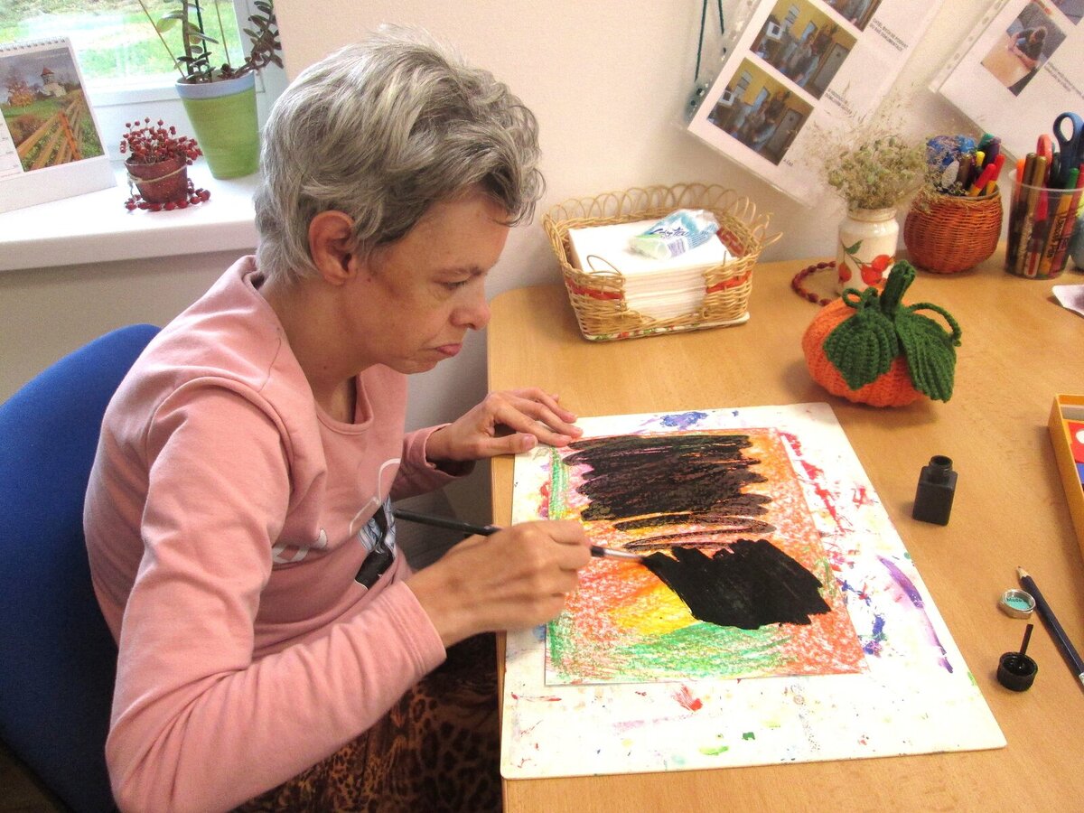 Během října se uživatelé vydávali na procházky. Podařilo se jim najít pár hub. Užili si návštěvu jesenických trhů, ale vydávali se i na procházky podzimní krajinou, které pak zúročili při tvoření s podzimní tématikou. Jedno dopoledne se zastavili v knihovně, kde si mohli vyzkoušet tradiční malbu květin fixami na porcelán, díky čemuž si vytvořili originální hrneček s podšálkem, který si pak s radostí odnášeli do svých domovů.