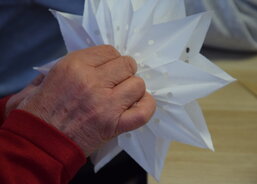 V Centru pomoci sv. Martina si v úterý při povídání našli čas na tvoření a z papírových sáčků si vyrobili vánoční hvězdu, kterou si zkrášlí domov.