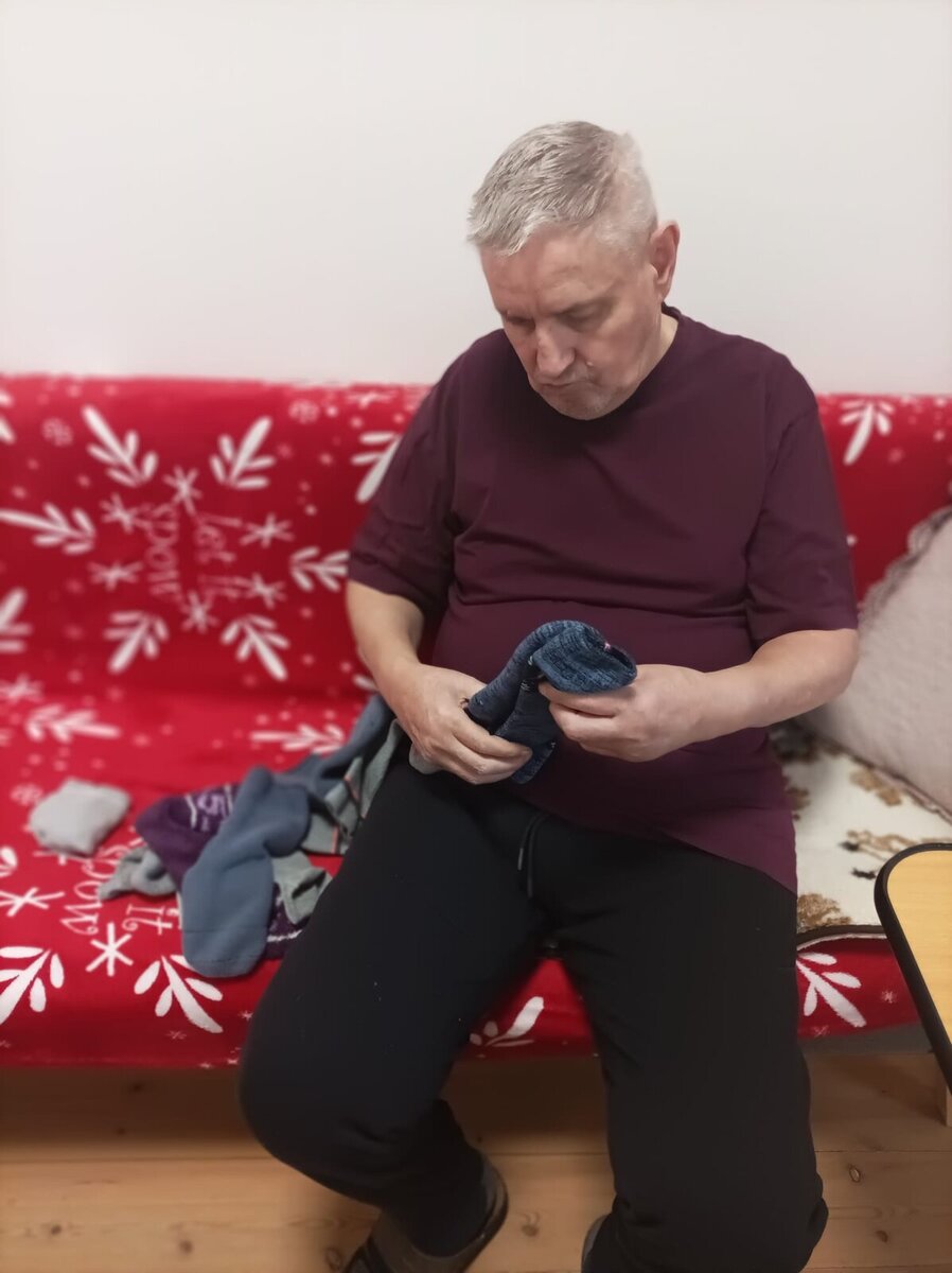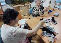 Jednou z nich je i obyčejné skládání ponožek. Možná se to může zdát jako maličkost, ale právě tyto běžné každodenní aktivity v sobě nesou velkou hodnotu. Klienti se zapojují do činností, které důvěrně znají ze svého domova – třídí, skládají, povídají si u toho a společně tráví čas. Přirozená aktivita podporuje jemnou motoriku, procvičuje paměť, přináší pocit užitečnosti.
