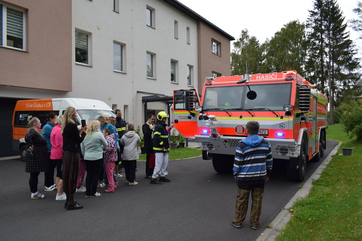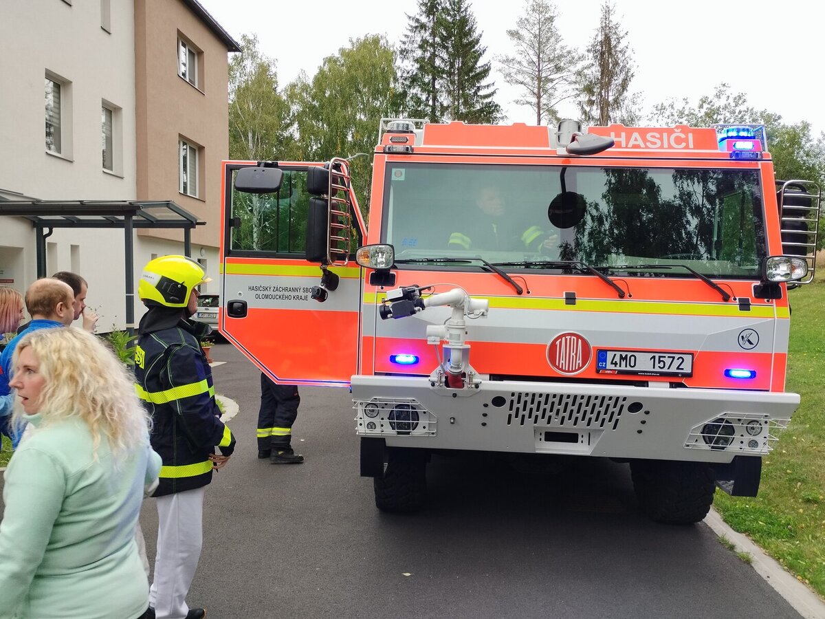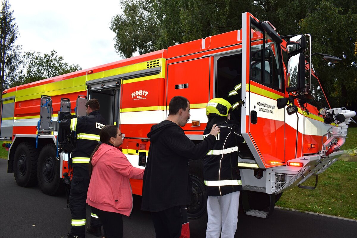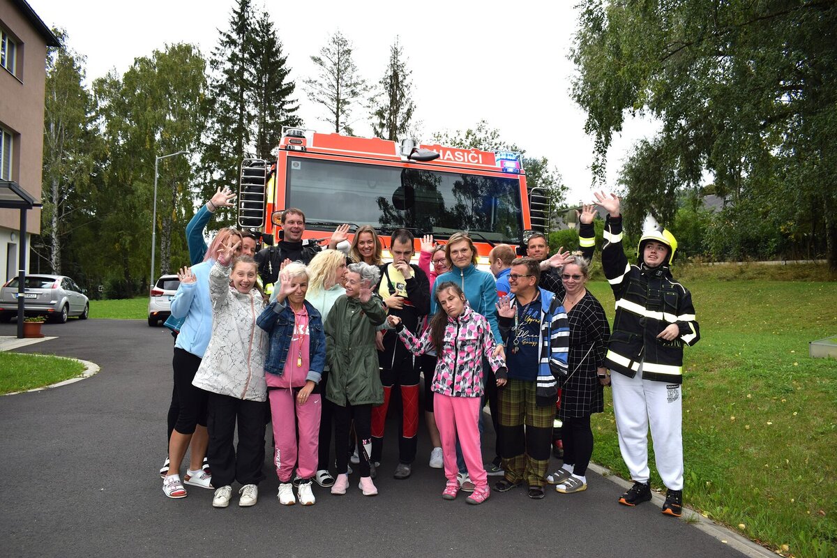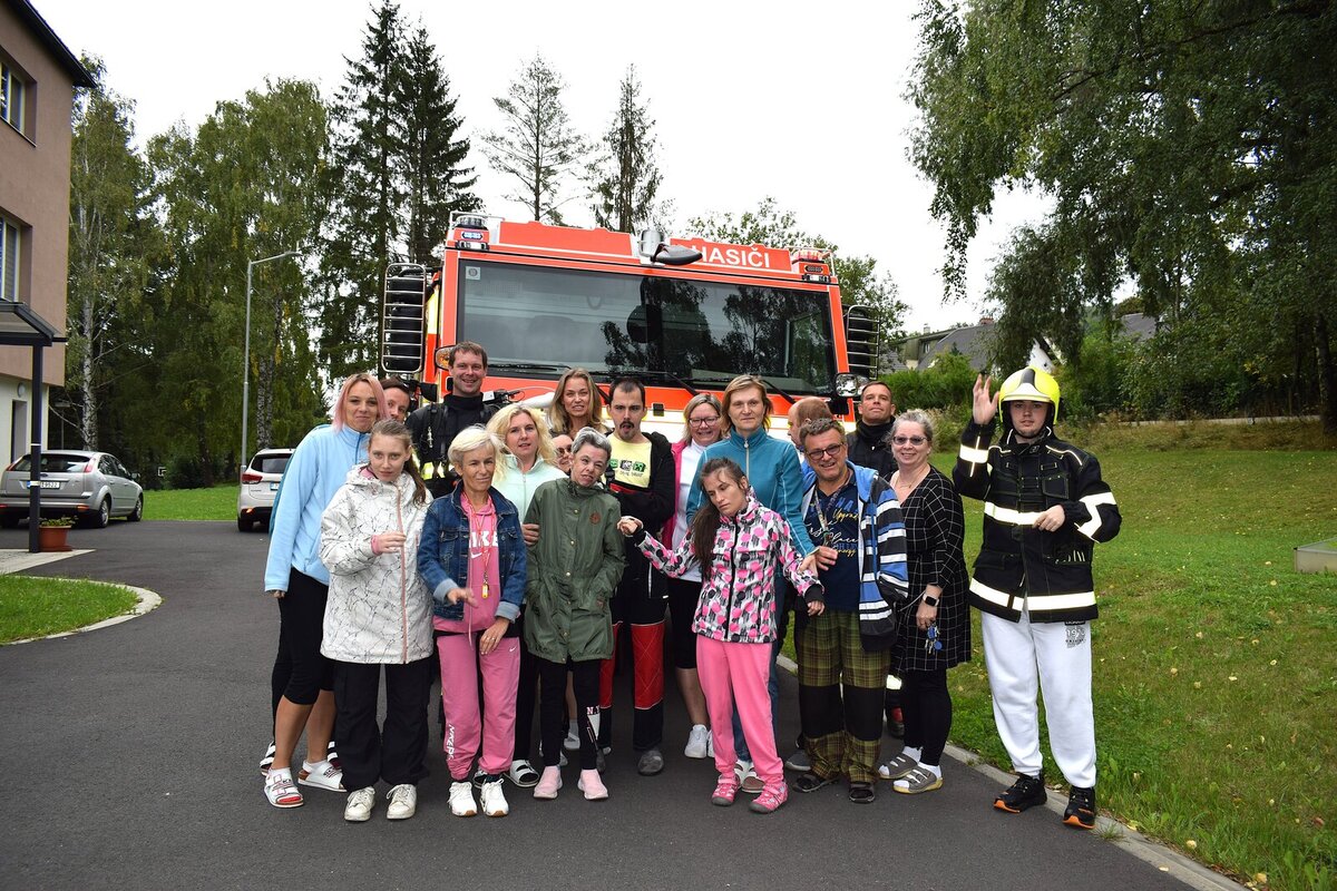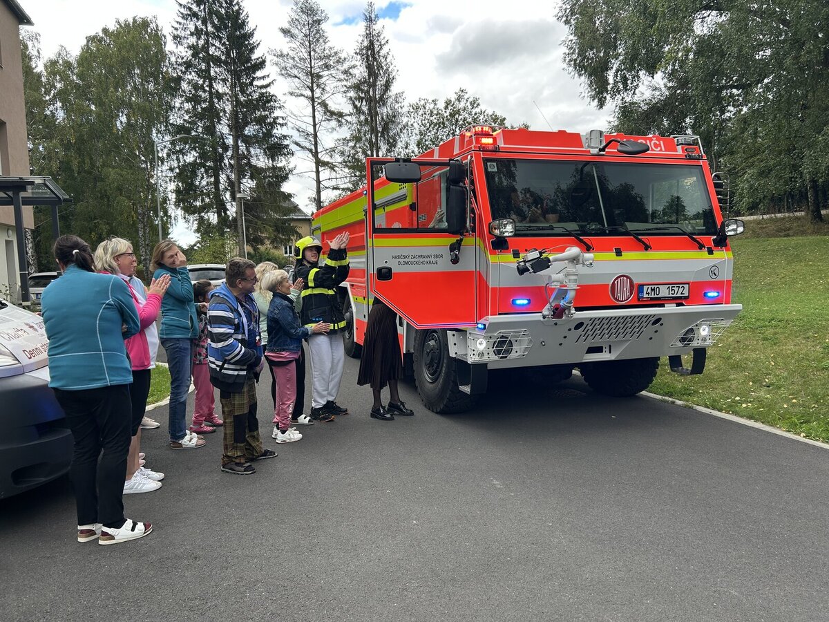 Pak na uživatele stacionáře čekalo velké překvapení. Na nádvoří na ně čekal nový hasičský vůz, který blikal, houkal a oni si vše mohli osahat, a dokonce si i sednout do kabiny za volant. Jen těžko se dá popsat, jaké mezi uživateli vyvolal tento obr na kolech nadšení.