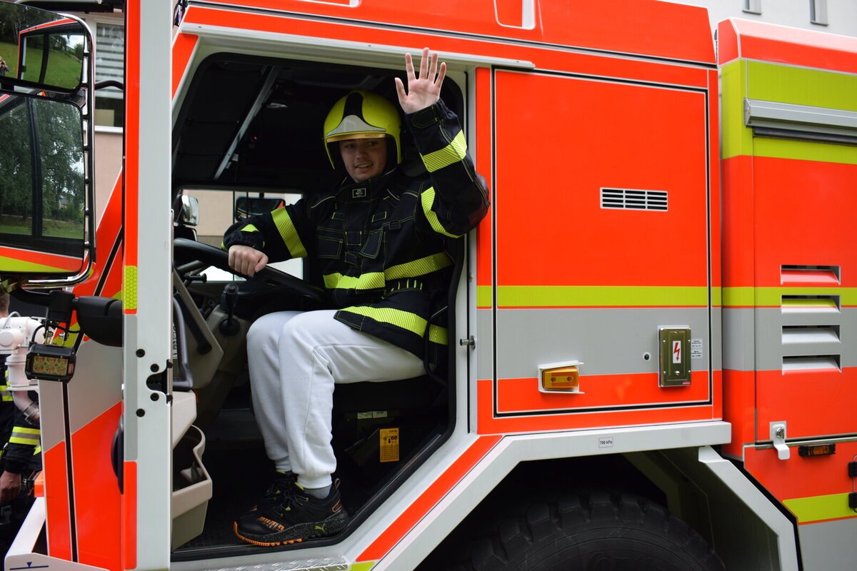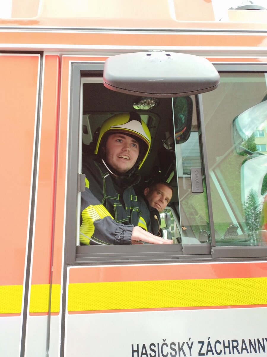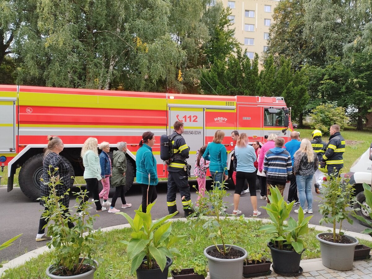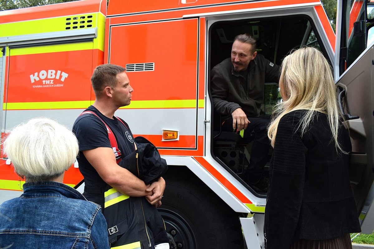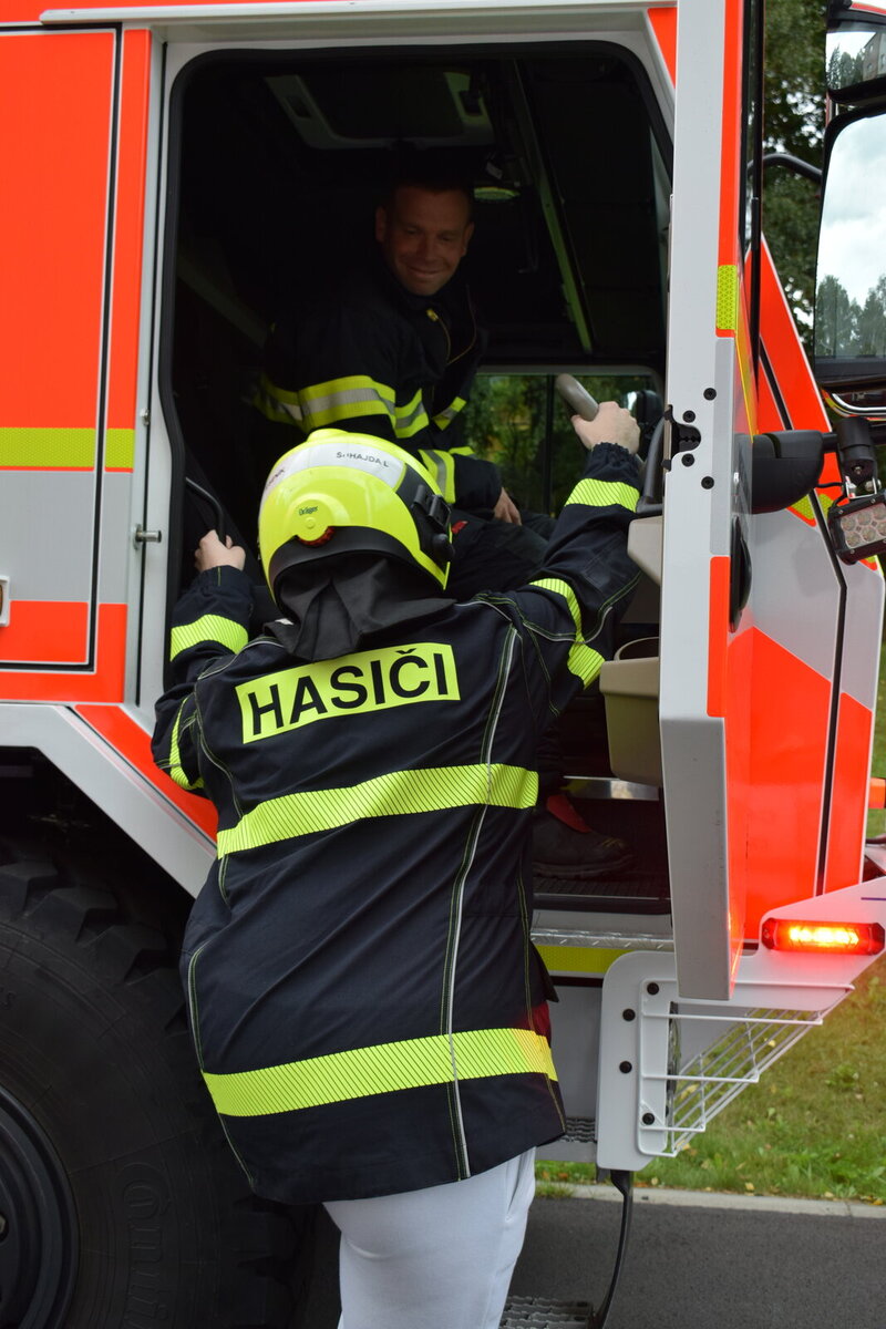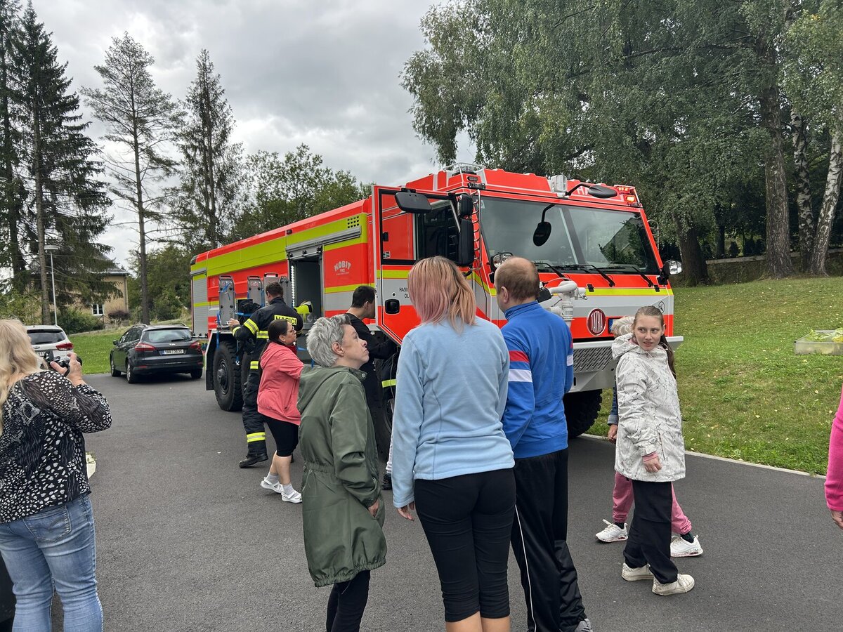 Pak na uživatele stacionáře čekalo velké překvapení. Na nádvoří na ně čekal nový hasičský vůz, který blikal, houkal a oni si vše mohli osahat, a dokonce si i sednout do kabiny za volant. Jen těžko se dá popsat, jaké mezi uživateli vyvolal tento obr na kolech nadšení.
