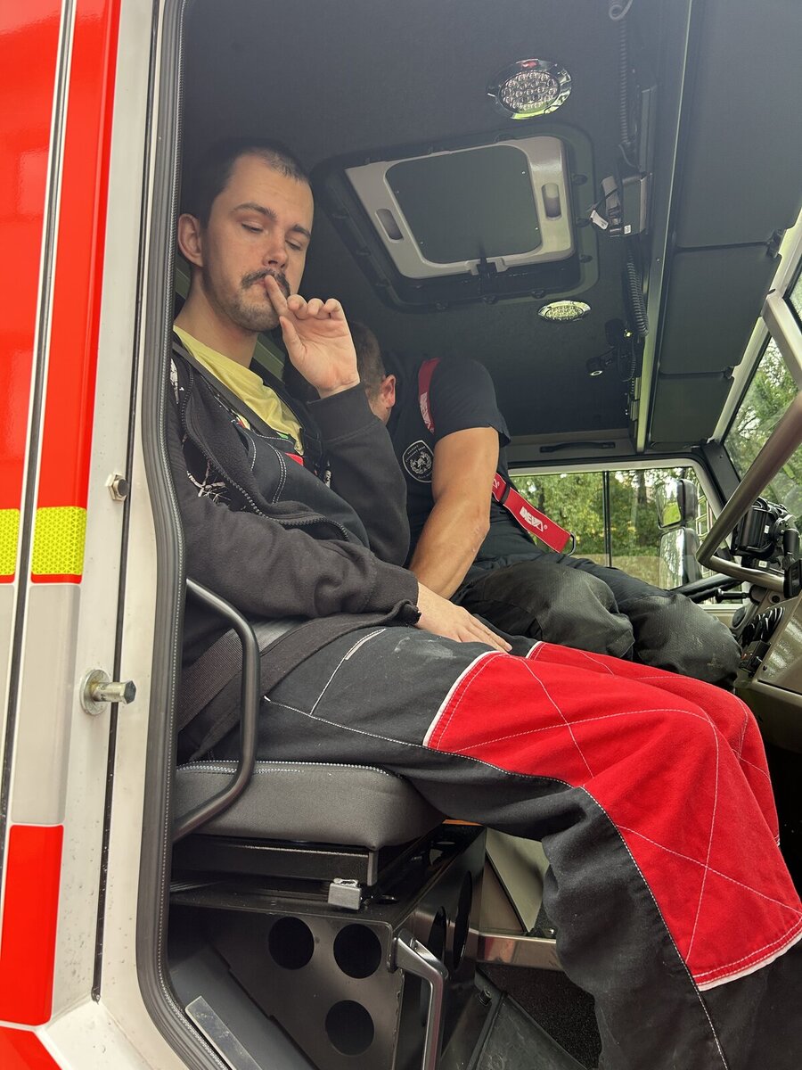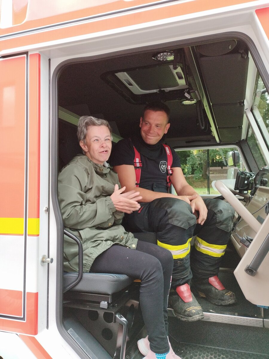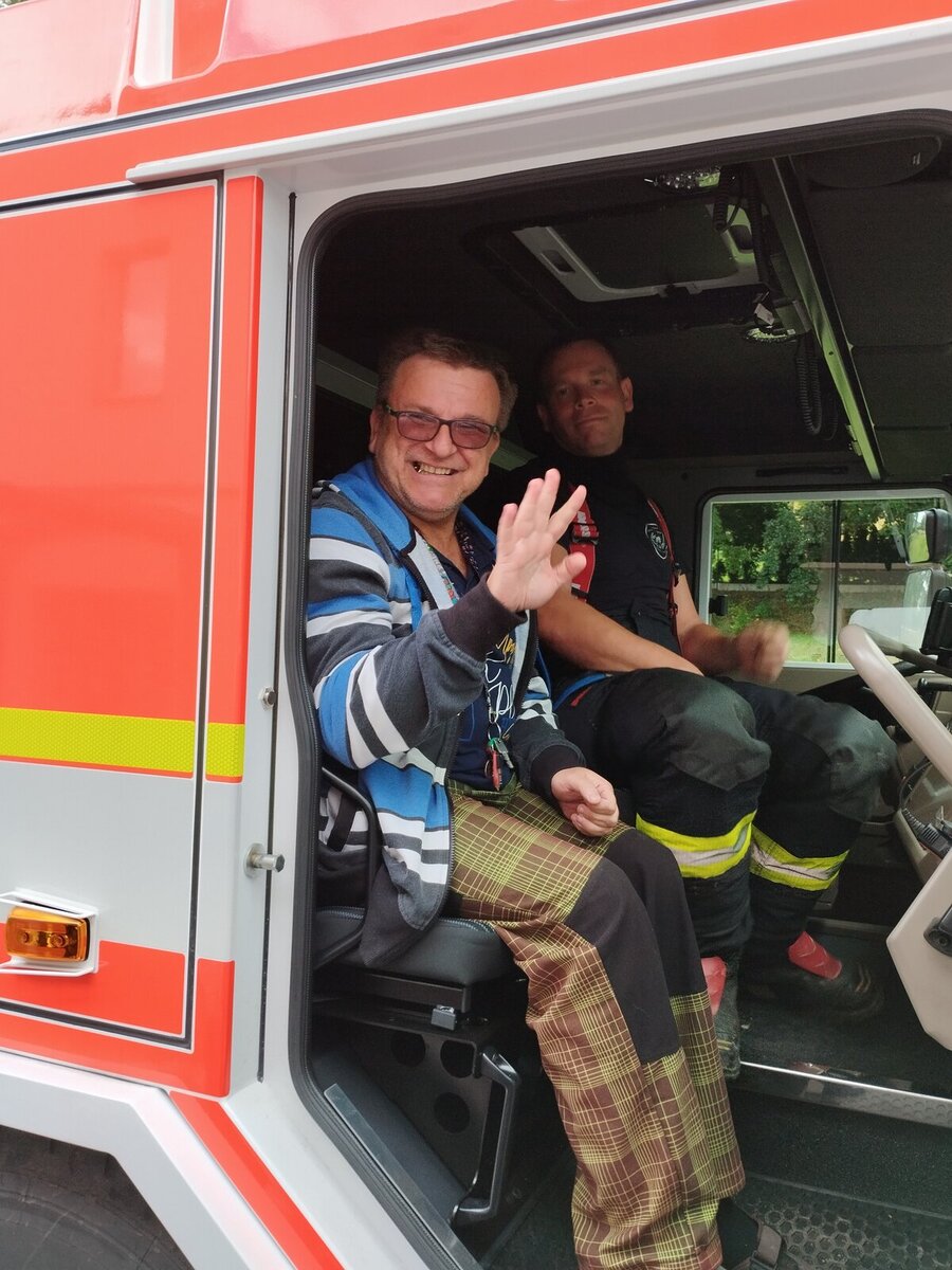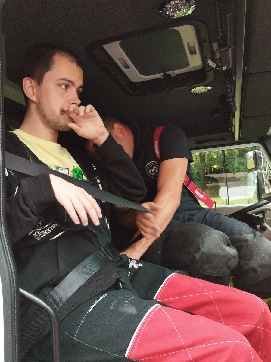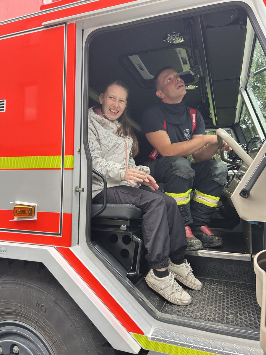 Pak na uživatele stacionáře čekalo velké překvapení. Na nádvoří na ně čekal nový hasičský vůz, který blikal, houkal a oni si vše mohli osahat, a dokonce si i sednout do kabiny za volant. Jen těžko se dá popsat, jaké mezi uživateli vyvolal tento obr na kolech nadšení.
