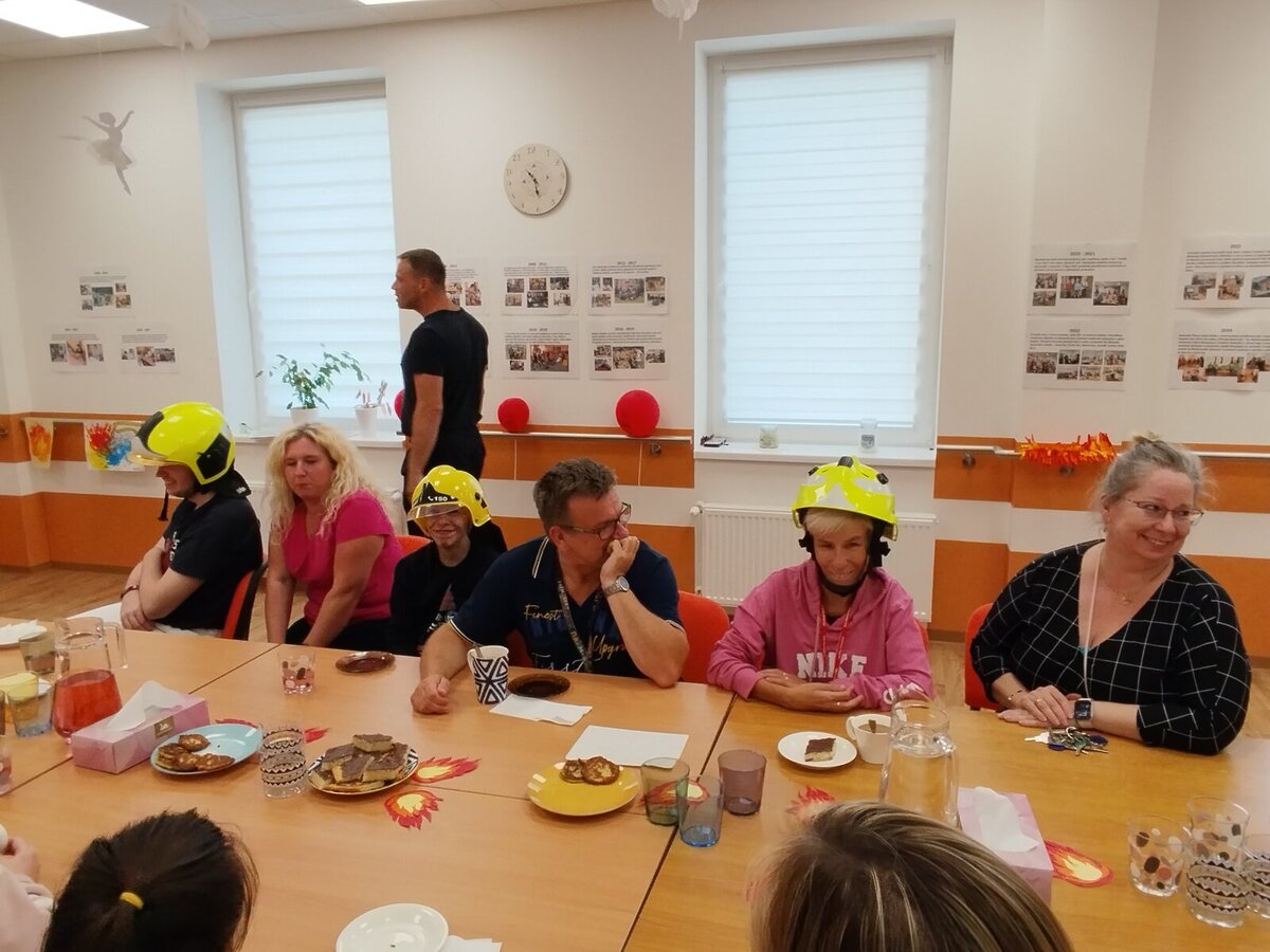 Po desáté hodině vládlo v Denním stacionáři Šimon napětí. V rámci celoročního projektu „Ten dělá to a ten zas tohle“ totiž měli dorazit na návštěvu tolik očekávaní profesionální hasiči a povyprávět uživatelům o své práci. O tom, čemu musí umět čelit, i co dělá jejich práci zajímavou.