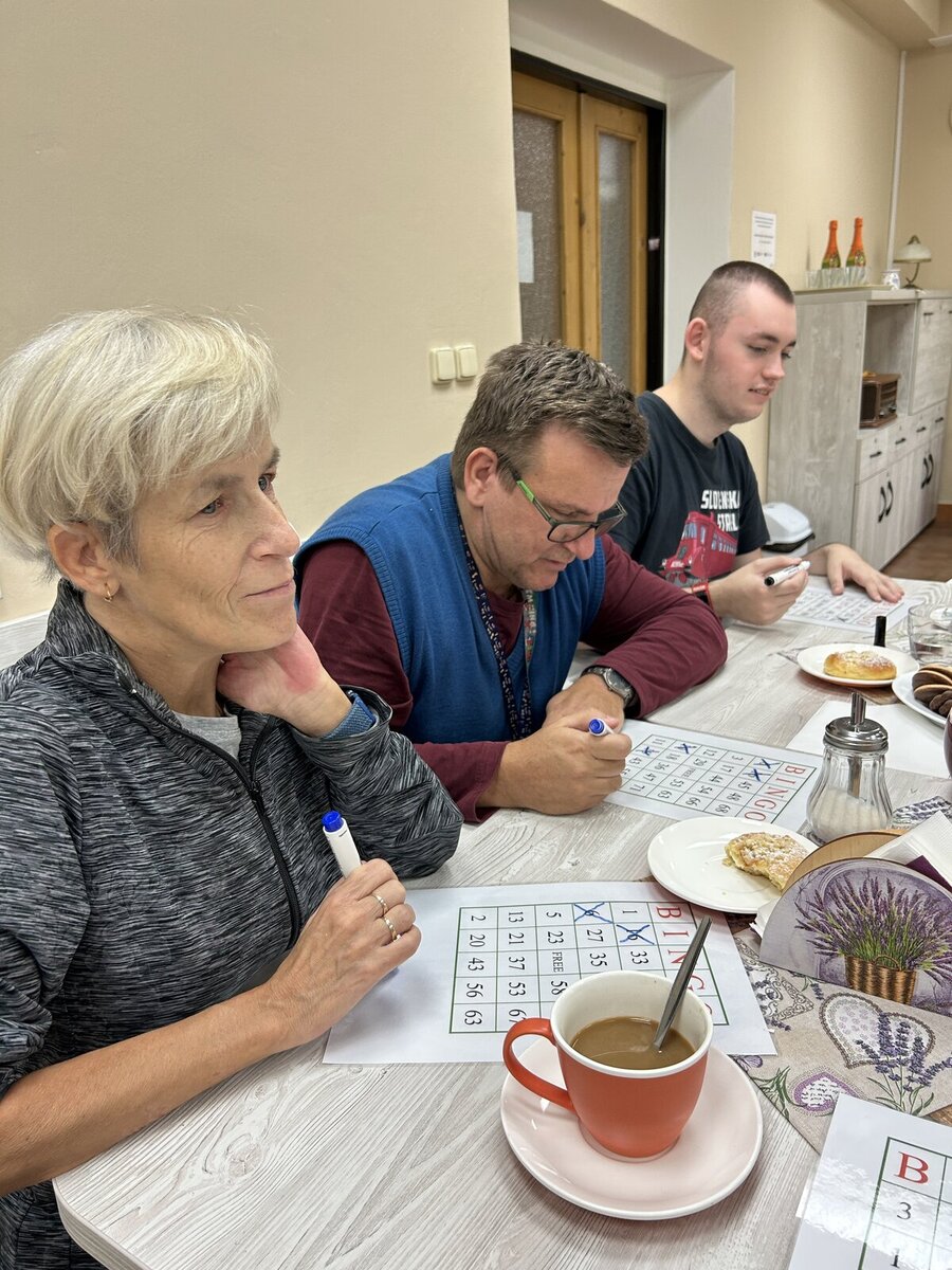 V úterý, poslední den v září, vyjeli uživatelé Tomáš, Petr, Ivanka a tři pracovnice stacionáře za seniory. Tam na ně již čekala milá společnost pracovníků a klientů. Nechybělo bohaté občerstvení v podobě skvělých koláčků, čaj i kávička a koneckonců i zábava. Paní Alice Lenerová všem stručně přiblížila pravidla hry BINGO a mohlo se začít. A kdo vyhrál? Do finále se dostali všichni hráči a slovíčko Bingo si nakonec mohl zvolat každý. Děkujeme za příjemné dopoledne a těšíme se zase příště .