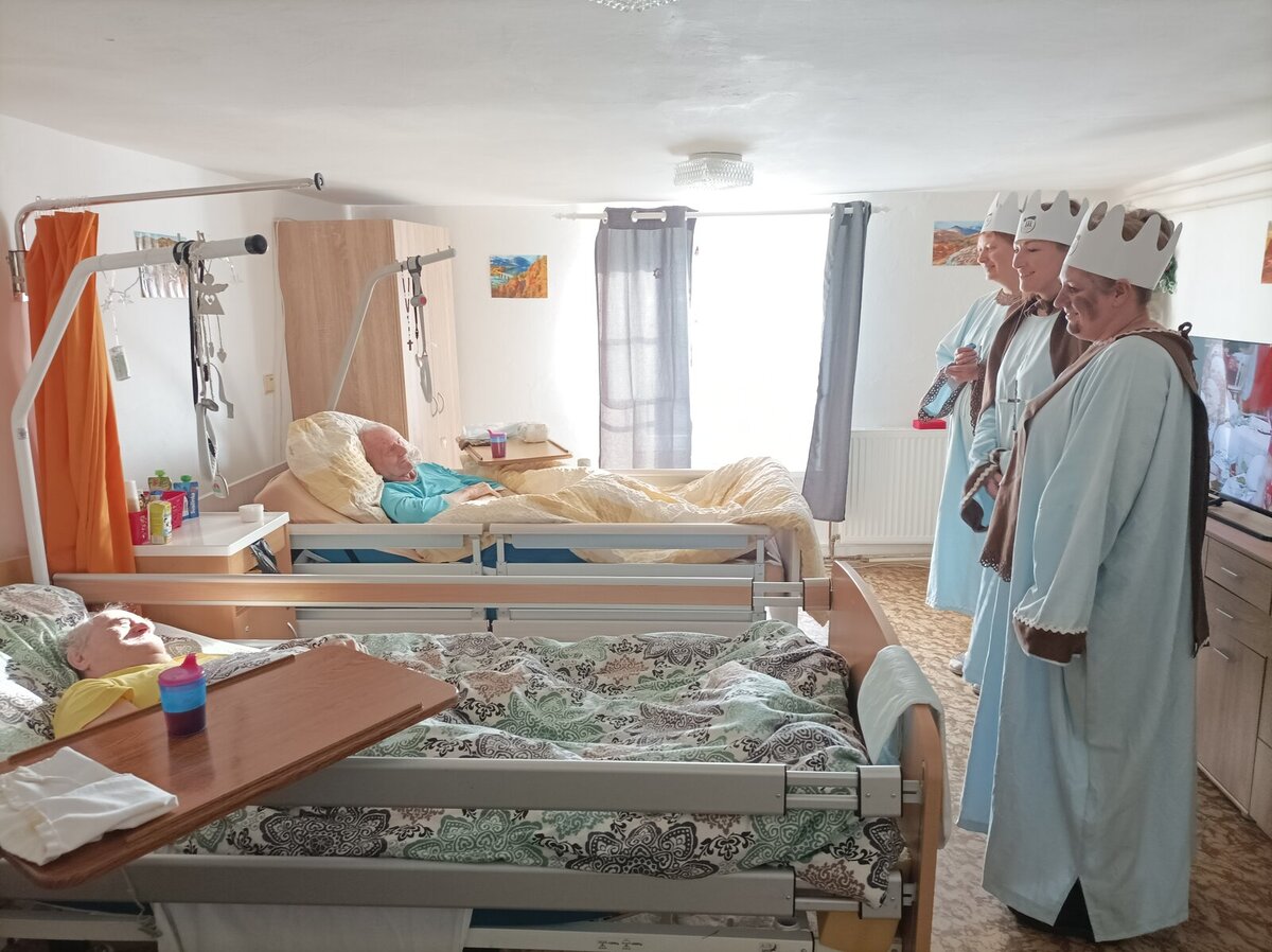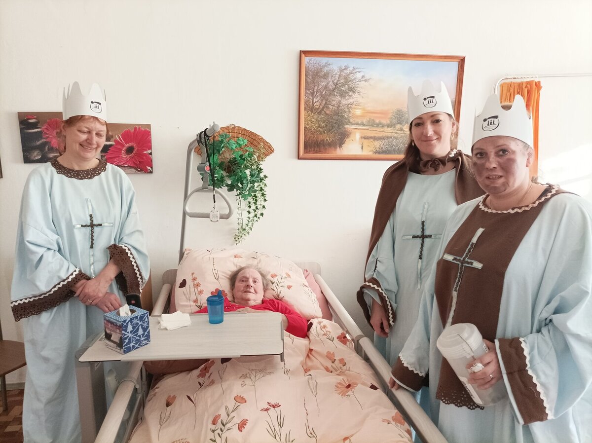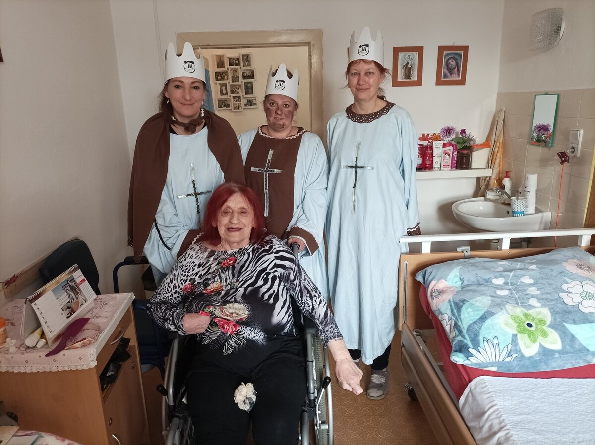 Domov pokojného stáří sv. Hedviky ve Vidnavě navštívili Tři králové. V převlecích se za klienty vydaly koordinátorka péče Vladislava Koisová společně s aktivizační pracovnicí Martinou Kovaříkovou a vedoucí Provozních služeb Vidnava Monika Nedavašková.