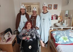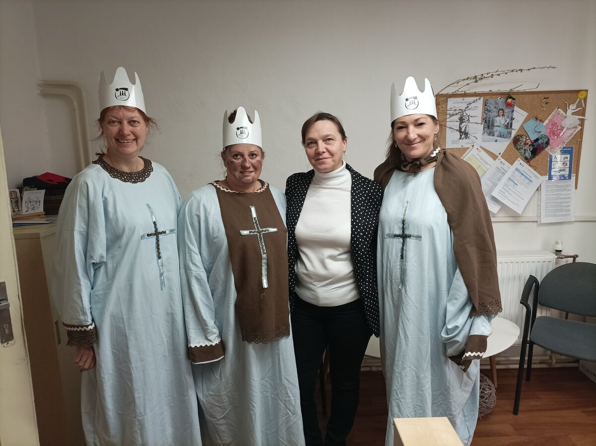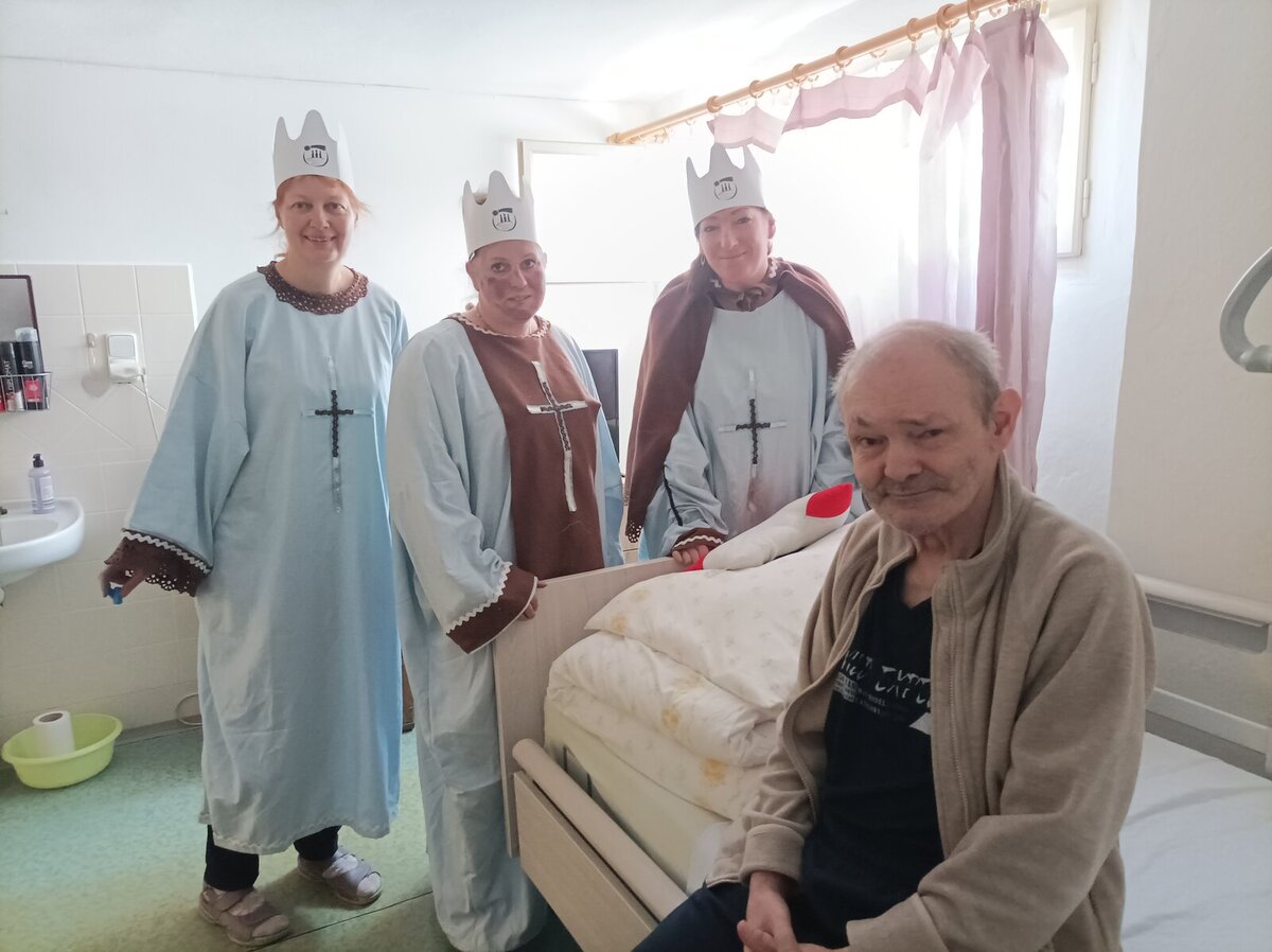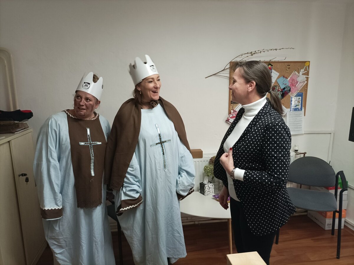 Domov pokojného stáří sv. Hedviky ve Vidnavě navštívili Tři králové. V převlecích se za klienty vydaly koordinátorka péče Vladislava Koisová společně s aktivizační pracovnicí Martinou Kovaříkovou a vedoucí Provozních služeb Vidnava Monika Nedavašková.