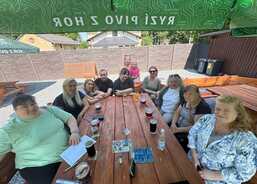 Ve čtvrtek ráno se ve Vápenné, odkud se společně vydali na výšlap, sešlo 17 lidí, včetně rodin s dětmi. Při zpáteční cestě z vodopádů se výprava zastavila v místní Rybářské baště, kde si pochutnali jejich vyhlášených pstruzích.
