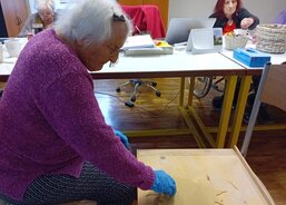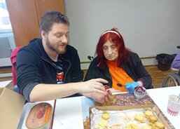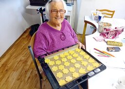 Senioři se v dílně rádi věnují i vaření a pečení, protože výsledek své práce mohou rychle zhodnotit. Minulý týden dostali z Vývařovny AVE těsto, z něhož napekli linecké cukroví pro oslavu MDŽ.