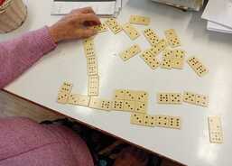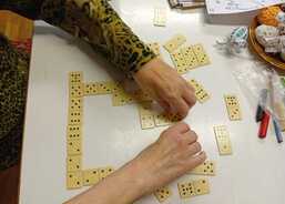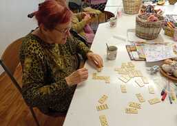 V minulých dnech si senioři vyzkoušeli taktiku a počítání při dominu. Zvednout hrací kostku, přemýšlet, kam s ní a zase ji uložit aktivuje nejen kognitivní funkce, ale i jemnou motoriku. A navíc se u toho dá zažít spousta legrace.