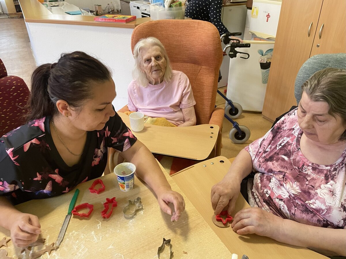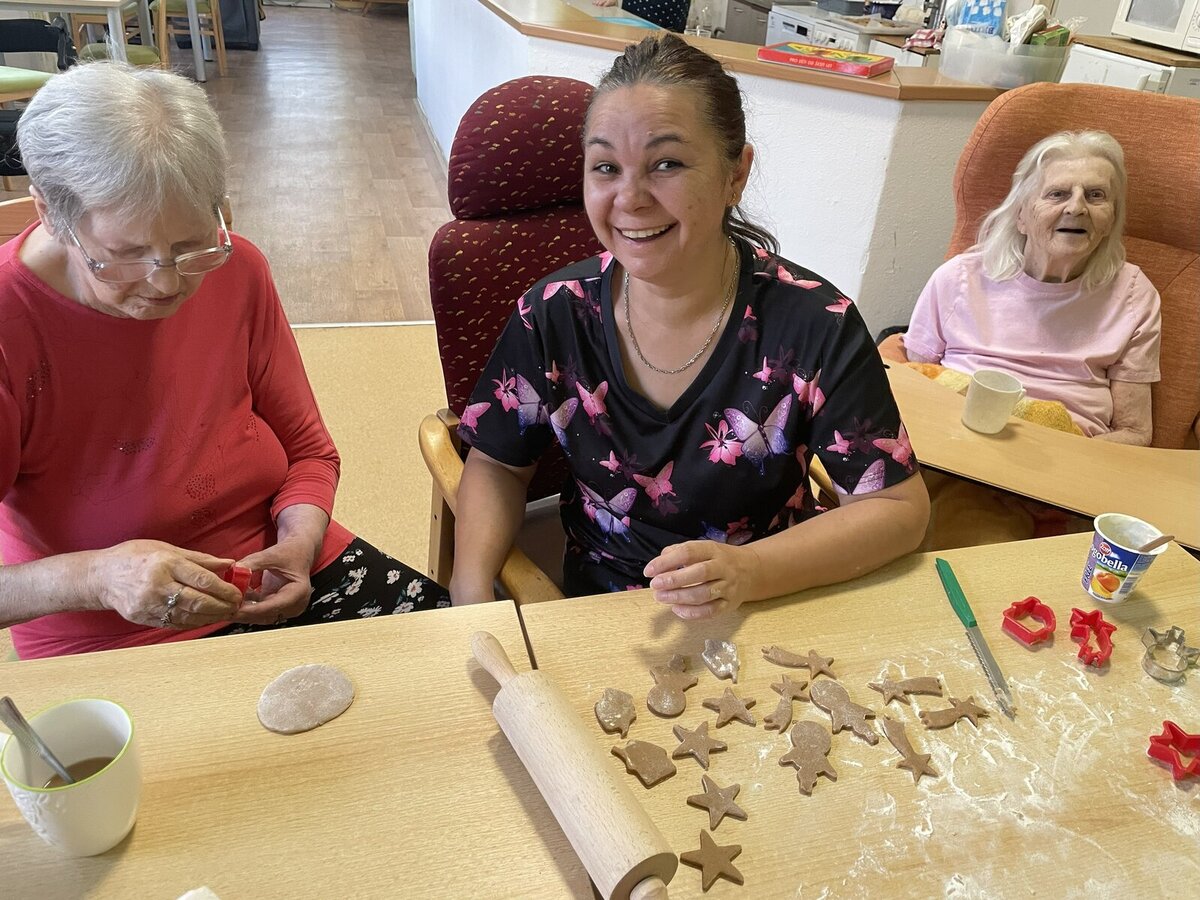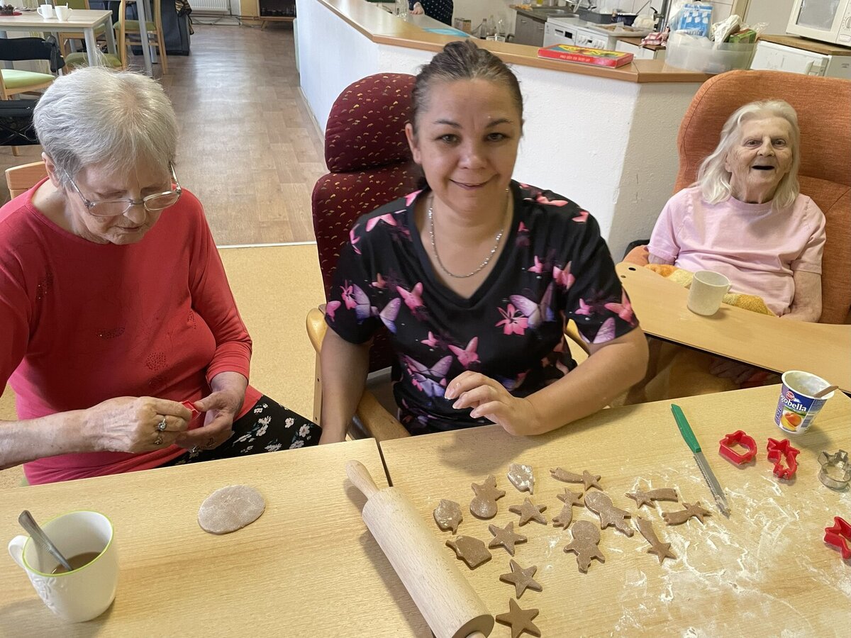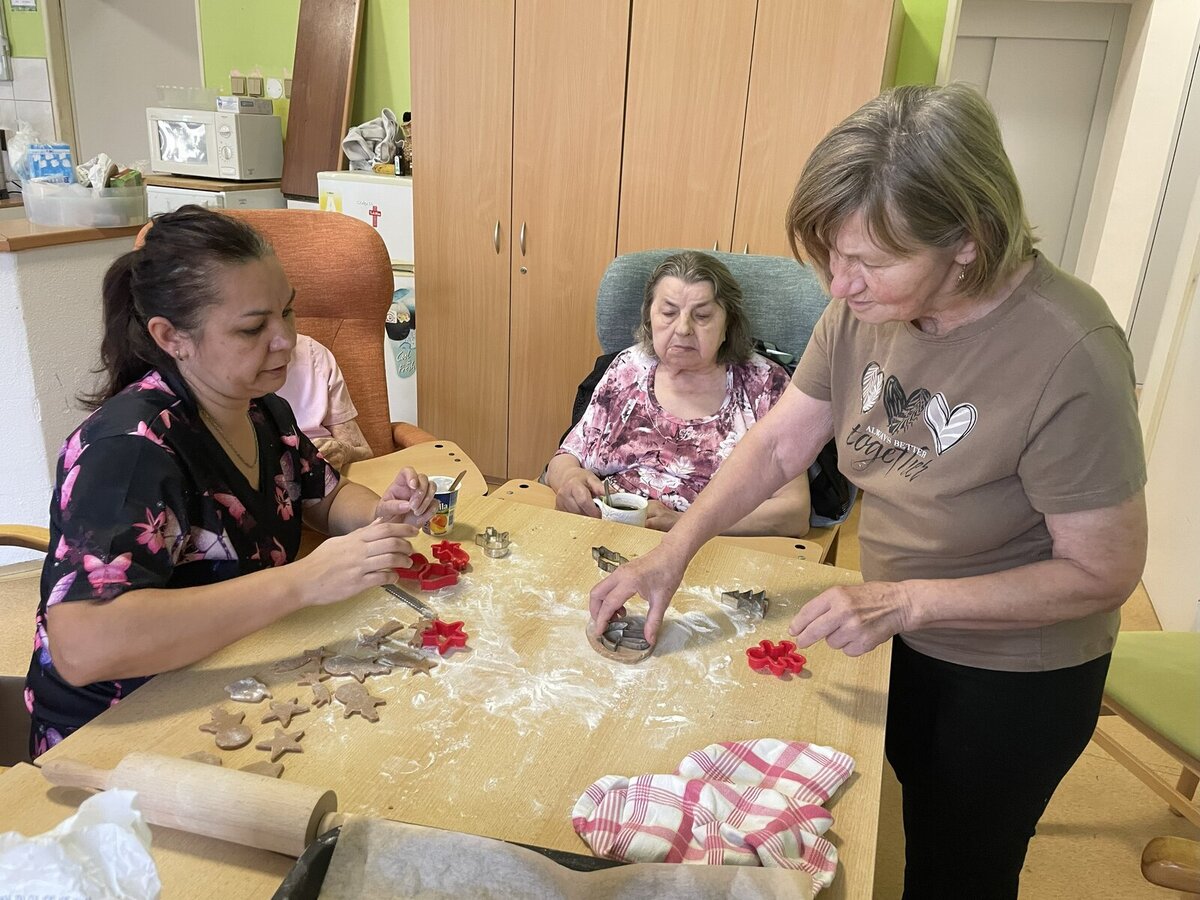 V rámci vánočních příprav se klienti spolu s aktivizační pracovnicí Annou Tesařovou a pečovatelkami Šárkou Schubertovou a Janou Bolfíkovou pustili do pečení vánočního cukroví. Díky děvčatům z Vývařovny Ave, která připravila těsta pro naše domovy, mohli všichni péct bez starostí a s chutí.