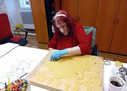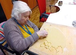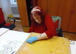 Aktivizační dílna domova zažila ve čtvrtek pořádný mumraj. Senioři se totiž pustili do pečení cukroví a, však to znáte z domu, jak to vypadá, když se do pečení pustí jedna kuchařka, tady se u jednoho stolu sešlo hned několik nadšenců a všichni chtěli tvořit. Aktivizační pracovnice měla plné ruce práce, aby se vše dobře zorganizovalo a výsledkem bylo lahodné cukroví. Jeden člověk se pustil do válení těsta, další si vzali na starost vykrajování, jiní zase plnili formičky. Ruku k dílu přiložila i seniorka, která ovládá prakticky jen jednu ruku. Ani tento hendikep ji nezabránil v tom, aby pro ostatní obyvatele domova připravila tradiční vánoční dobrotu. A jaký je výsledek? No přece výborný. Však se stavte v domově a ochutnejte.