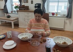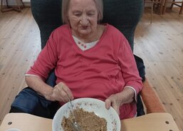 Během dopolední aktivizace si senioři procvičili jemnou motoriku při louskání ořechů a pečení svatomartinských rohlíčků. Po setmění se několik klientů zúčastnilo lampionového průvodu, který vedl svatý Martin na bílém koni oblečený do svého bájného červeného pláště, o který se měl podle legendy rozdělit s žebrákem.