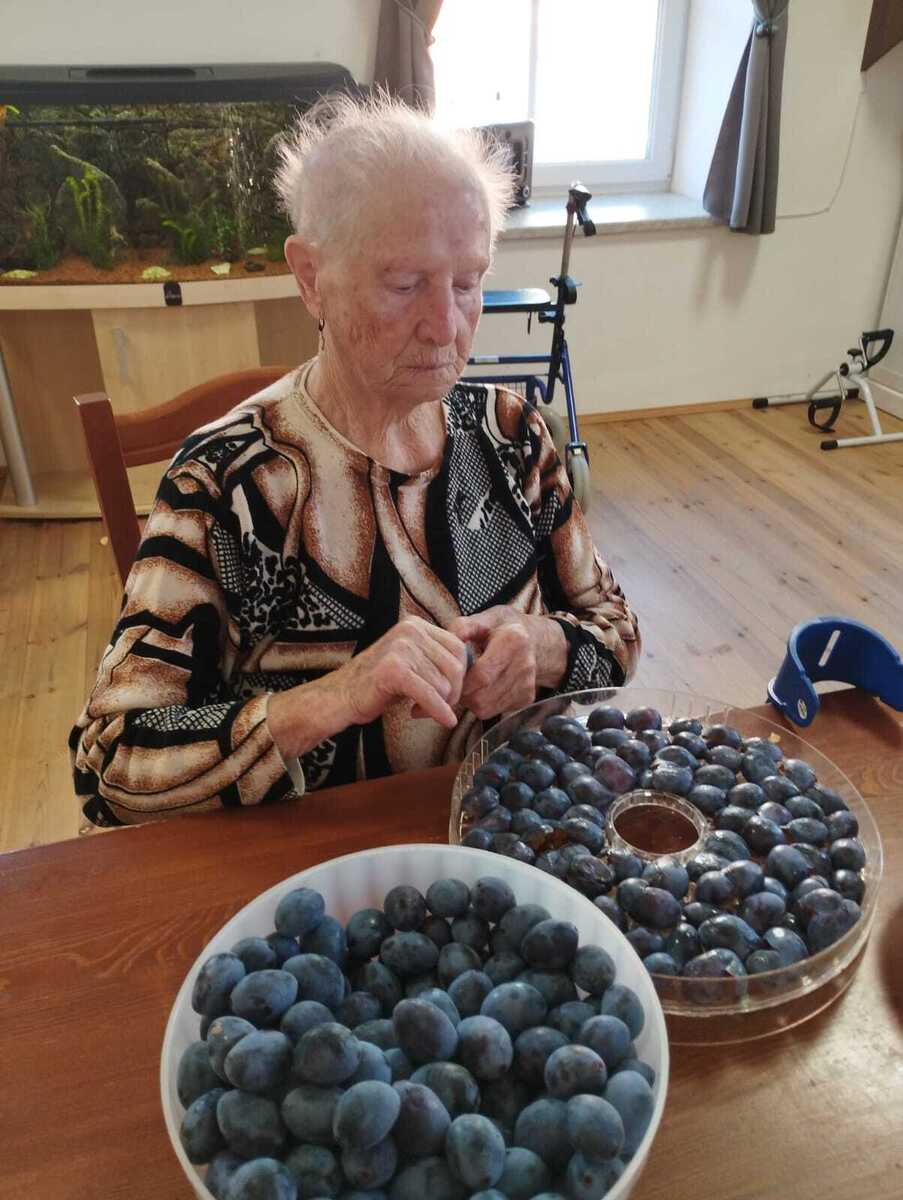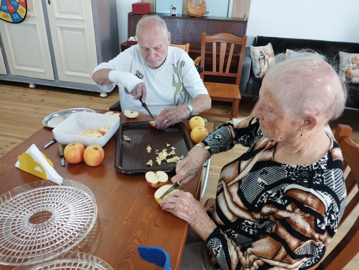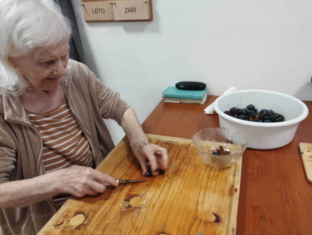 Stromy se v zahradě domova pod tíhou ovoce doslova prohýbají, a tak pan údržbář pravidelně sbírá dozrálé plody a přináší je klientům. Ti si vychutnávají čerstvé ovoce a zároveň je s pomocí pracovníků domova dále zpracovávají. Jana Hrůzková zapojila seniory do činnosti, kterou dobře znají už z dětství. Společně se pustili do vypeckovávání švestek a jejich sušení. Nezapomnělo se ani na jablíčka, z nichž vznikly voňavé křížaly. Sušené ovoce budou klienti nabízet na připravovaném Dni jablek ve Vlčicích.