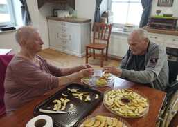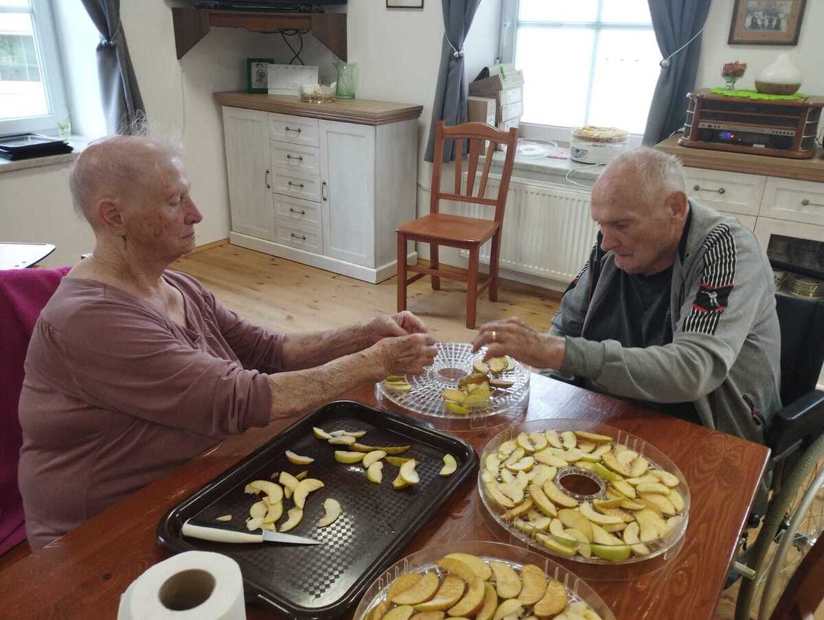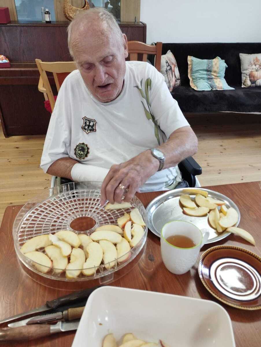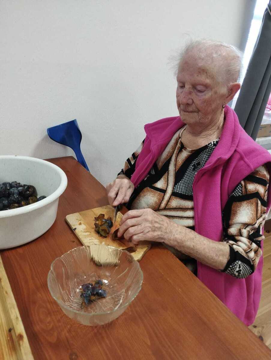 Stromy se v zahradě domova pod tíhou ovoce doslova prohýbají, a tak pan údržbář pravidelně sbírá dozrálé plody a přináší je klientům. Ti si vychutnávají čerstvé ovoce a zároveň je s pomocí pracovníků domova dále zpracovávají. Jana Hrůzková zapojila seniory do činnosti, kterou dobře znají už z dětství. Společně se pustili do vypeckovávání švestek a jejich sušení. Nezapomnělo se ani na jablíčka, z nichž vznikly voňavé křížaly. Sušené ovoce budou klienti nabízet na připravovaném Dni jablek ve Vlčicích.