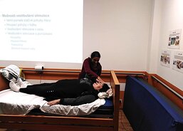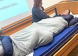 Proto si nejdříve ukázaly správný postup. Jak by se i jim líbilo, kdyby o ně někdo pečoval nebo o jejich maminku. Hedvika Borýsková jim vysvětlila, proč je zapotřebí každého klienta oslovit, udělat iniciační dotyk, aby se klient zpřítomnil a vnímal pečovatelku a dle svých možností při konkrétní péči spolupracoval.